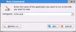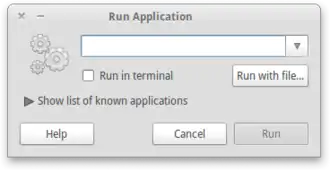 El comando funciona más o menos como una interfaz de línea de comando de una sola línea. En la interfaz de GNOME (un derivado de tipo UNIX), el comando Ejecutar se utiliza para ejecutar aplicaciones a través de comandos de terminal. Se puede acceder a él pulsando Alt+F2. KDE (un derivado similar a UNIX) tiene una funcionalidad similar llamada KRunner. Se puede acceder a él mediante las mismas teclas de enlace.