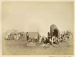 Además, las inundaciones, la sequía, las primeras heladas y el impacto ambiental del asentamiento plantearon nuevas amenazas para los rebaños. Los comerciantes, tramperos y cazadores dependían del bisonte para mantener su forma de vida. Los métis intentaron mantener su estilo de vida a través de una variedad de medios. Por ejemplo, a menudo usaban dos carros de dos ruedas fabricados con materiales locales, lo que significaba que eran más móviles que los indios y, por lo tanto, no dependían de seguir patrones de caza estacionales.[101]