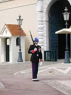 Un antecedente de los guardias de Palacio fue conocida en el siglo XIX como los "Papalins", exsoldados de los Estados Papales que, al finalizar la autoridad temporal del Papado en el momento de la unificación italiana, se les dio un papel en la protección del Príncipe de Mónaco. Una calle en el distrito monegasco de Fontvieille lleva el nombre de "Papalins".