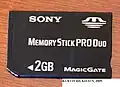 | PRO Duo | 2002-2006 | 32 GB | Compacta (31×20×1.6 mm), DRM opcional, hasta 32 GB | |||