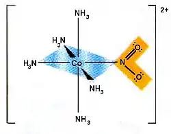 3] (Donde AA es un ligando bidentado) era evidencia de una estructura octaédrica y que esta isomería era debida a la asimetría de la molécula; algunos químicos orgánicos trataron de refutar su hipótesis aduciendo que la actividad óptica se debía a la presencia de átomos de carbono en la estructura y que esta propiedad era exclusivamente debida al carbono. Esta controversia llevó a Werner y su grupo en 1914 a sintetizar el más extraordinario complejo de la época, el hexol ([Co(Co(NH
