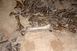 Sobre algunos de los hallazgos se ha encontrado una capa de ceniza volcánica del Campaniense de hace unos 45.000 años, lo que demuestra que los humanos habitaron el lugar antes de esto.[16][17][18]