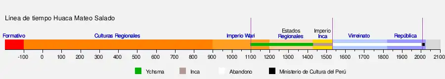 - ↑ a b c d e f «Complejo Arqueológico Monumental Mateo Salado | Ministerio de Cultura». www.cultura.gob.pe. Consultado el 3 de febrero de 2018.