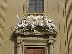 En el portal de la iglesia de San Felipe Neri se encuentran las estatuas de la Fe y de la Esperanza, obras de Gioacchino Fortini (1715). En el del oratorio, por su parte, se encuentran la Oración y la Humildad, respectivamente de Pompilio Ticciati y Giovanni Nobili (ca. 1775).[2]
