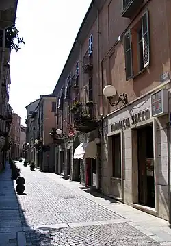 El gueto estaba ubicado en el distrito de los Israelitas, antes del Cappellai (actual vía Aliberti) y además del San Bernardino (ahora vía Ottolenghi), donde todavía está presente la sinagoga del siglo XVIII, con su muy interesante museo, rico en mobiliario. .
