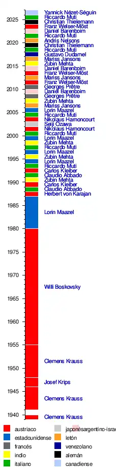 Los siguientes directores de orquesta figuran en el cuadro en orden de elección temporal.
