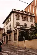 La fachada actual es el producto de una reforma realizada en 1915. Resuelta con un clasicismo poco brillante, que no tiene nada que ver con la arquitectura modernista, en la que destacan las ventanas italianizantes de las plantas primera y segunda y del elemento central que lo corona. La planta baja también ha sufrido muchas modificaciones. |