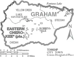 - Esta obra contiene una traducción derivada de «Graham County, North Carolina» de Wikipedia en inglés, publicada por sus editores bajo la Licencia de documentación libre de GNU y la Licencia Creative Commons Atribución-CompartirIgual 4.0 Internacional.
