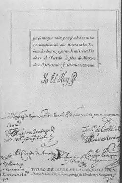 | Primer titular | Mateo de Toro-Zambrano y Ureta | |
