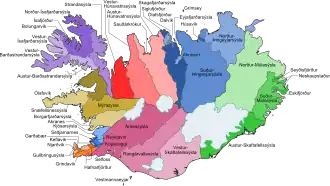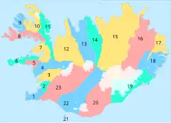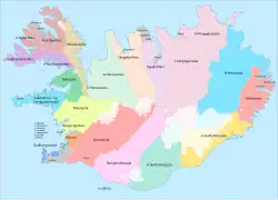Islandia se divide en landsvæði (regiones). Los landsvæði se dividen, a su vez, en 23 condados, sýslur: