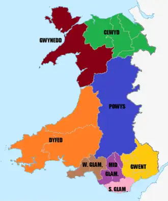 | Gwent | Blaenau Gwent, Caerphilly, Torfaen, Monmouthshire, Newport | 1.553 | 560.500 |