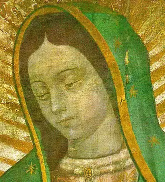 ![]() La Virgen de Guadalupe dentro de la iglesia católica latinoamericana, ha sido declarada patrona de México, América y Filipinas. | ||