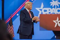 En marzo Donald Trump habló en la Conferencia de Acción Política Conservadora (CPAC), en donde estuvo el expresidente de Brasil, Jair Bolsonaro, quien dio un discurso el mismo día más temprano.[9][10][11][12] El 46.º gobernador de Florida, Ron DeSantis, no estuvo presente en la conferencia de 2023, a diferencia del año anterior.[13][14]