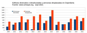 - ↑ a b «United Nations Office for the Coordination of Humanitarian Affairs - occupied Palestinian territory | Data on demolition and displacement in the West Bank». United Nations Office for the Coordination of Humanitarian Affairs - occupied Palestinian territory (en inglés). Consultado el 2 de noviembre de 2021.
