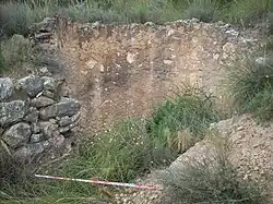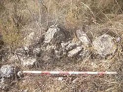 En su interior se disponen espacios de habitación constituidos por muros de mampostería, restos constructivos que se asocian a fragmentos de muelas de molinos barquiformes[3] y materiales cerámicos, entre los que destacan vasijas ovoides con tetones, y restos de tallar de sílex.[4]