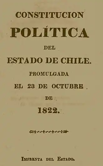 ![]() Portada de un ejemplar de la Constitución Política de la República de Chile de 1822. | ||