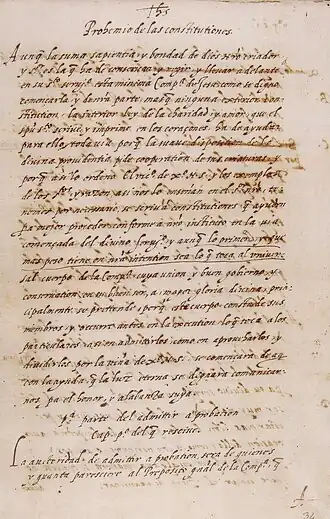 - ↑ Les Constitutions de la Compagnie de Jésus Archivado el 8 de febrero de 2007 en Wayback Machine..
