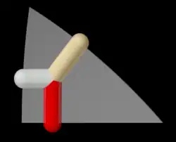 - Se coloca un vértice en un punto de la línea AB, de modo que biseca el ángulo de C. Esto produce un poliedro con el símbolo de Wythoff a b|c.