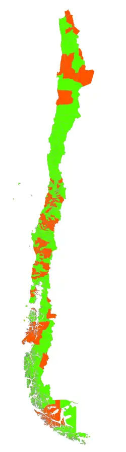 Mapa político de Chile mostrando las comunas que participaron y se abstuvieron de participar en la consulta ciudadana. Participó Se abstuvo