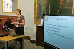 - Katharine Hayhoe:[194] profesora en la Universidad Tecnológica de Texas, donde es directora del centro de ciencias climáticas. Es bien conocida por sus esfuerzos para comunicar la preocupación basada en la fe, especialmente cristiana, sobre el cambio climático y fue autora de la evaluación nacional del clima de Estados Unidos.