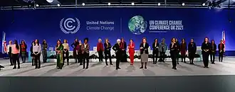 Las mujeres han realizado importantes contribuciones a la investigación y las políticas sobre el cambio climático y al análisis más amplio de los problemas ambientales mundiales.[5] Incluyen a muchas mujeres que son científicas, así como a legisladoras y activistas. Las mujeres que son investigadoras han hecho contribuciones significativas a las principales evaluaciones científicas, como las del Panel Intergubernamental sobre el Cambio Climático y la Evaluación de los Ecosistemas del Milenio, y están bastante bien representadas en los comités clave de cambio global del Consejo Internacional para la Ciencia (ICSU) y la Academia Nacional de Ciencias de Estados Unidos. Las mujeres han desempeñado importantes roles de liderazgo en la política climática internacional. Por ejemplo, Christiana Figueres lidera las negociaciones climáticas internacionales como Secretaria Ejecutiva de la Convención Marco de las Naciones Unidas sobre el Cambio Climático (CMNUCC) y la expresidenta irlandesa Mary Robinson es la enviada especial de las Naciones Unidas sobre el cambio climático. Susan Solomon presidió el grupo de trabajo 1 de ciencias del clima de la Cuarta Evaluación del Panel Intergubernamental sobre el Cambio Climático en 2007.[6]