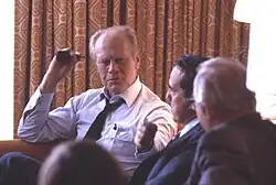 Poco antes de la convención, se consideró la posibilidad de elegir al expresidente Gerald Ford como candidato a vicepresidente. Ford solicitó ciertos poderes y prerrogativas que, según se ha descrito, convierten a Ford en copresidente (si hubiera sido elegido).[3][4] Las negociaciones sobre los términos de dicho acuerdo se llevaron a cabo en el Hotel Pontchartrain.[5] Estos incluyeron el regreso de Henry Kissinger como secretario de Estado y el nombramiento de Alan Greenspan como secretario del Tesoro en un "acuerdo global".[5][4]