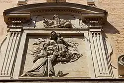 Cuenta con una bella portada a la calle San José, obra de Juan de Oviedo y de la Bandera del año 1590 que presenta una notable vistosidad que destaca sobre el paño continuo y sobrio de la fachada del convento, con una hornacina central que representa la virgen entregando el rosario a Santo Domingo y Dios presidiendo la escena, por debajo el escudo de la casa real y de los dominicos.
