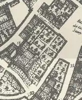 ![]() Vista del convento de la segunda ubicación, en el plano de Ventura Seco (1738) | ||