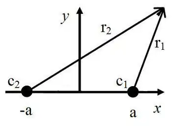 donde es la distancia entre los dos centros del sistema de coordenadas.