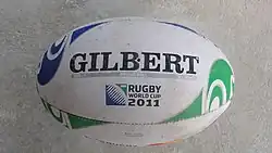 El balón oficial de la copa del Mundo de rugby 2011 fue diseñado por la marca deportiva especializada en productos de rugby Gilbert. Recibió el apodo de «Virtuo»,[17]​ y fue presentado oficialmente por Gilbert en Auckland en el mes de mayo de 2011. Se trata de un balón realizado especialmente para este torneo. Su presentación se produjo después de un largo periodo de pruebas y estudios en varios partidos internacionales, entre ellos los del Torneo de las Seis Naciones 2011 y los test matches de otoño de 2011. El balón Virtuo fue concebido para ser más eficaz, mediante una válvula diferente y un novedoso ajuste de la vejiga del balón destinados a mantener la forma del balón y a facilitar el giro de la pelota.
