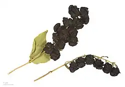 Wikispecies tiene un artículo sobre Coriaria myrtifolia.- Foto de frutos de C. myrtifolia