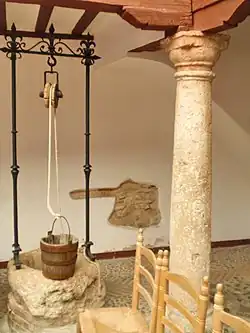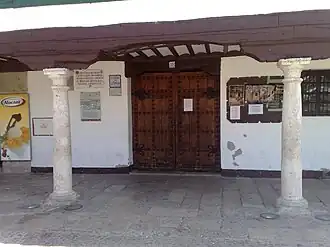 Entre la puerta de la calle y el patio se encuentra un zaguán empedrado, como lo está toda la planta, de pequeños cantos rodados, luciendo el del zaguán la Cruz de Calatrava. En él había instalado un mesón que funcionaba regularmente hubiera o no representación. En su parte izquierda hubo un fuego manchego y en una de sus pajeras apareció la baraja fechada en 1725. Desde el mismo se abría una cancela de madera que comunicaba directamente con el patio.