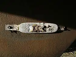 - La protección catódica mediante ánodos de sacrificio: Se conecta el metal que queremos proteger con una barra de otro metal más activo, que se oxidará preferentemente, protegiendo al primer metal.[2] Se utilizan uno o más ánodos de sacrificio de un metal que sea más fácilmente oxidable que el metal protegido. Los metales que comúnmente se utilizan para ánodos de sacrificio son el zinc, el magnesio y el aluminio.