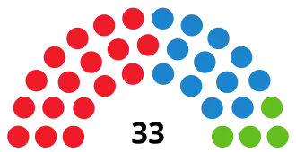 | Ley de 2014, vigente tras la reforma estatutaria[10] | 15 fijos + 18 prop. pobl. | 25–35 | 33 | 3+3 = 6 | 3+5 = 8 | 3+2 = 5 | 3+2 = 5 | 3+6 = 9 |