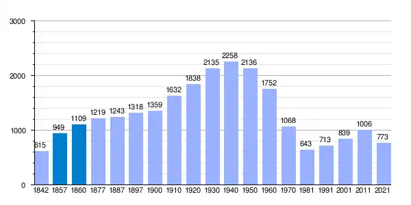 | Gráfica de evolución demográfica de Cortes de Pallás[4] entre 1842 y 2021 |