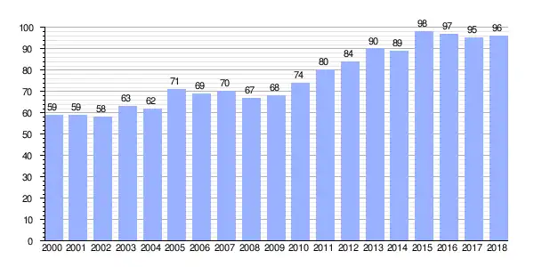 | Gráfica de evolución demográfica de Coruxido entre 2000 y 2018 |