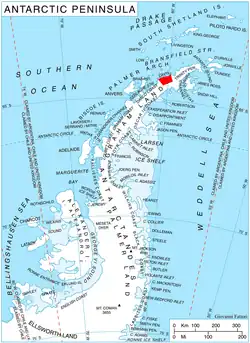 Argentina incluye a la costa Palmer en el departamento Antártida Argentina dentro de la provincia de Tierra del Fuego, Antártida e Islas del Atlántico Sur; para Chile forma parte de la comuna Antártica de la provincia Antártica Chilena dentro de la Región de Magallanes y de la Antártica Chilena; y para el Reino Unido integra el Territorio Antártico Británico. Las tres reclamaciones están restringidas por los términos del Tratado Antártico.