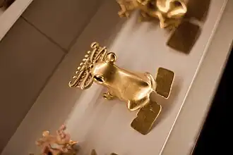 A partir de 800 d. C. y hasta la llegada de los españoles en el siglo XVI, se presentó un incremento en el tamaño y complejidad del diseño interno de las aldeas, y las diferencias regionales se acentuaron. La presencia de numerosos cementerios, simples y complejos, obras de infraestructura masivas, diversidad de bienes domésticos y suntuarios, desarrollo de orfebrería, intercambio regional y conflictos entre cacicazgos por territorios y recursos son elementos característicos de esta época. La jerarquización social incluye individuos principales como el cacique y el chamán, y el pueblo común formado por artesanos y agricultores. El oro substituyó al jade como símbolo de rango, en especial en las regiones Central y Diquís.[46] En la región del Valle del Díquis, se fabrican las esferas de piedra distintivas de la región, en el delta de los ríos Térraba y Sierpe, las cuales se postula que fueron utilizadas como símbolo de rango y marcadores territoriales. Otras obras de piedra incluyen figuras de bulto de formas humanas y animales, metates en forma de jaguar y estatuas antropomorfas.[47] Las zonas central, sur y atlántica del país tuvieron influencia sudamericana, debido a la presencia de grupos que hablan lenguas chibchas. La actual provincia de Guanacaste se convirtió en la frontera sur de Mesoamérica con la llegada de los chorotegas para el periodo comprendido entre los años 900 al 1000 d. C.[48] Los asentamientos humanos en la Costa Rica prehispánica cumplieron una función de puente cultural entre el Sur y el Norte del continente, y la orfebrería y la artesanía policromada en barro, tuvieron un amplio desarrollo y bellísimos resultados.[48]