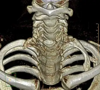 Una costilla cervical (a veces denominada costilla del cuello o de Eva) es una costilla supernumeraria que nace en la séptima vértebra cervical, situándose por encima de la primera costilla esternal.[1] Se trata de una anomalía congénita presente en el 1% de la población mundial (1 de cada 100 personas), siendo muy escasos los casos en los que el individuo presenta no una sino dos costillas cervicales. Es la malformación costal más frecuente en humanos y aparece con mayor frecuencia en las mujeres (2,5:1).[2]