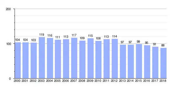 | Gráfica de evolución demográfica de Costoia entre 2000 y 2018 |