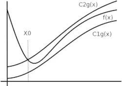 Una función f(x) pertenece a Θ(g(x)) cuando existen constantes positivas y tales que a partir de un valor f(x) se encuentra atrapada entre y . Quiere decir que las funciones f y g son iguales a partir de un valor dado salvo por una factor constante. Por tanto tiene sentido tomar a g como un representante de f.