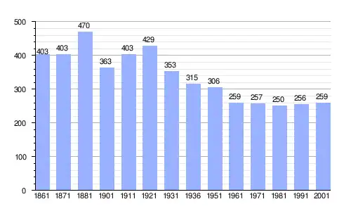 | Gráfica de evolución demográfica de Crandola Valsassina entre 1861 y 2001 |