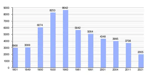 | Gráfica de evolución demográfica de Crato entre 1801 y 2021 |