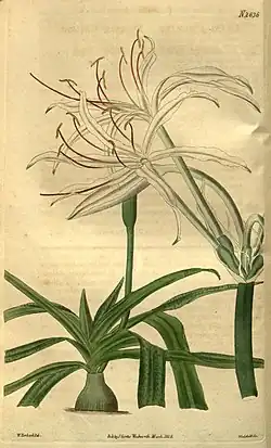 Crinum: nombre genérico que deriva del griego: krinon = "un lirio".[5]