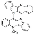 :13C NMR (CDCI3, 100 MHz): 5 161.0 (C-9e), 146.89 (C-5'a) , 145.69 (C-9'a), 146.13, (C-4'a), 142.55 (C-5a, C-10a), 134.87 (C-11), 133.57 (C-4a), 131.92, (C-8), 129.83 (C-lO'a), 129.69 (C-8'), 129.42 (C-4'), 128.81 (C-3), 127.50 (C-1) b, 127.11 (C-1 l'a), 126.74 (C-3') b, 125.65 (C-1'), 125.24 (C-2) °, 124.28 (C-2') =, 123.72 (C-6), 123.20 (C-11a), 122.29 (C-6'), 121.72 (C-5'b), 121.36 (C-9), 121.36 (C-7'), 116.19 (C-7), 115.71 (C-4), 114.61 (C-5b), 114.28 (C-11'), 111.46 (C-9'), 38.17 (N-Me).