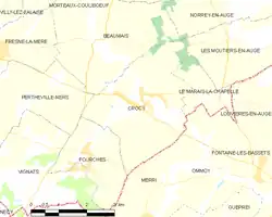 Crocy es una población y comuna francesa, situada en la región de Baja Normandía, departamento de Calvados, en el distrito de Caen y cantón de Morteaux-Coulibœuf.