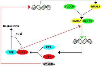 Las oscilaciones diarias en la cantidad de proteínas necesarias para la absorción o metabolismo del fármaco dan como resultado una farmacocinética circadiana. Las oscilaciones en los sistemas fisiológicos dirigidos por estos fármacos, dan como resultado una farmacodinamia circadiana. Estos relojes están presentes en la mayoría de las células del cuerpo, pero organizados de manera jerárquica.[3]