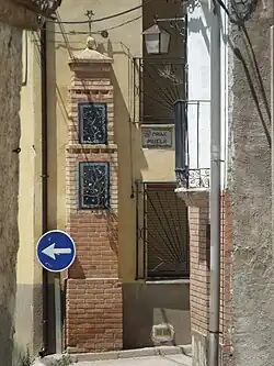 Consiste en una columna de unos tres metros de altura hecha de bloques de piedra sillar o de ladrillo, dependiendo de las zonas, culminada normalmente en una cruz de hierro o una esfera de piedra. Habitualmente suele tener uno o varios azulejos policromados con algún motivo religioso (santo o virgen). También hay ejemplares en los que se ubica una estatuilla religiosa en una oquedad a modo de capilla en lugar del azulejo o en otros casos, simplemente hay una inscripción o nada.