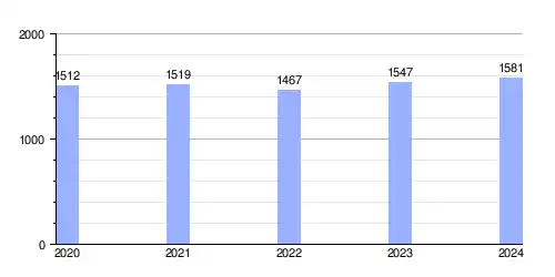 Hasta 2024 la población era de 1581 habitantes,[2] con una densidad de población de 53,28 hab/km².[2]