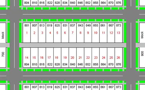 Cada cuadra numera como una centena. Primera cuadra, números del 001 al 099. Segunda cuadra, del 100 al 199, y así sucesivamente. Con este procedimiento, el número 1432 estará en la cuadra 15 de esa vía pública.